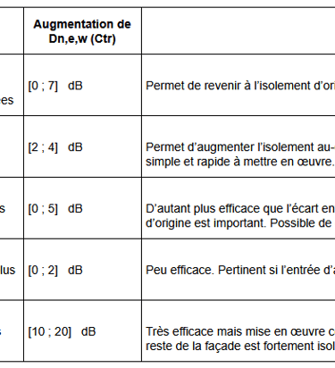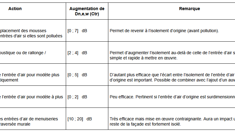 Le tableau ci-dessous résume l’impact des différentes actions permettant d’augmenter la valeur d’isolement des entrées d’air.