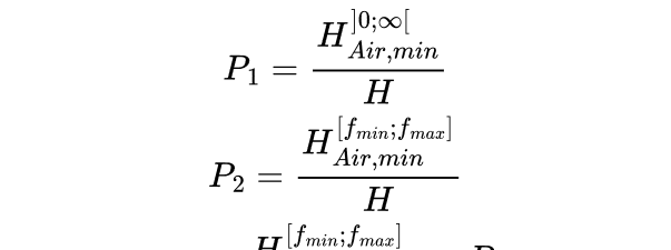 L'indice de performance (P2) est défini comme la hauteur théorique d'air nécessaire pour donner lieu à l'absorption du traitement sur [fmin ; fmax] rapportée à la hauteur théorique d'air nécessaire pour donner lieu à l'absorption complète du traitement :