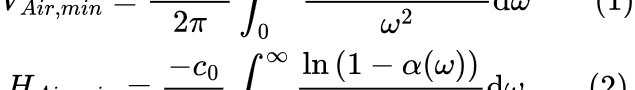 La présence du coefficient d'absorption au sein du logarithme népérien au numérateur de l'intégrande illustre que l'absorption et le volume minimum ne sont pas linéairement liés. De plus, cette formule implique que le coefficient d'absorption soit strictement inférieur à 1.
